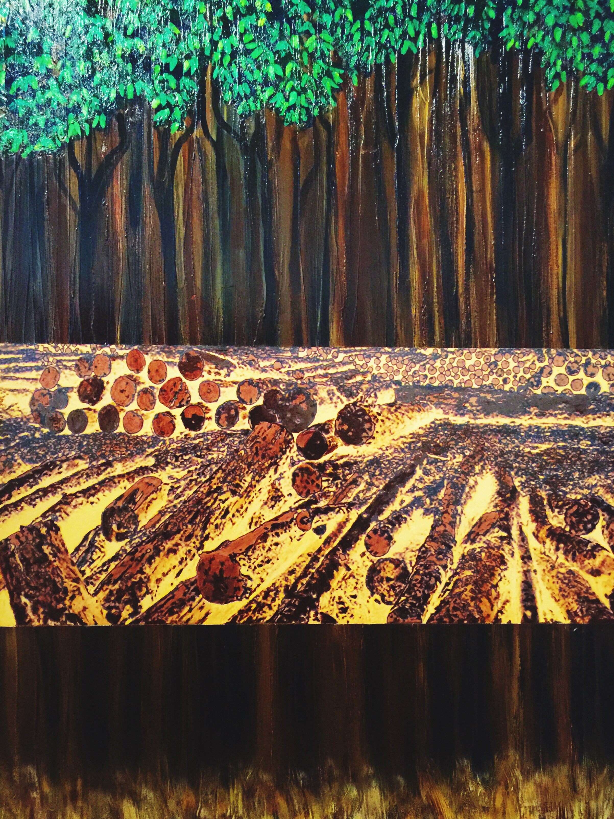 La destrucción inmisericorde de nuestros recursos naturales, potencian cada día más el camino de convertirnos en un país árido, inhabitable, muerto. Nuestros ríos y fuentes acuíferas, playas, bosques y reservas naturales, están siendo sometidas a una explotación, contaminación, degradación y destrucción bárbara e inmisericorde, ante los ojos cómplices de un Ministerio de Medio Ambiente y la inacción de un Estado ciego, sordo y mudo. Nuestra isla –Hispaniola– camina rápidamente a convertirse en un desierto árido, lleno de desperdicios, contaminantes industriales y ácidos venenosos esparcidos por las mineras extranjeras. Cada día vemos, quemas y talas de árboles, plásticos no degradables esparcido por toda la geografía nacional, muertes de especies marinas y destrucciones de áreas “protegidas”, ejecutadas por delincuentes depredadores , protegidos por militares y funcionarios del estado. Estamos ante un estado fallido, con leyes pero sin aplicaciones y sin régimen de consecuencias. El panorama es sombrío; solo la acción de denuncia de los grupos populares, la sociedad civil y de cada uno de nosotros con las herramientas y medios a nuestro alcance, impulsará el logro de que se asuma una real conciencia del grave problema para la sociedad y nuestras generaciones futuras, que representa este “desastre ecológico”. Como artista, con nuestro trabajo y herramientas, pretendemos crear la necesaria atención que las actuales circunstancias demandan,