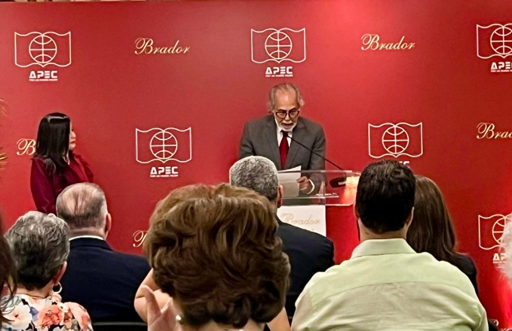 Distinguidas autoridades de APEC, encabezadas por el Presidente del Grupo APEC, Lic. Carlos A. Ortega, distinguidos miembros de la directiva de APEC Cultural, apreciado expositor Marcos Brador, familiares del artista, distinguidas personalidades que nos acompañan, damas y caballeros, amigos todos.