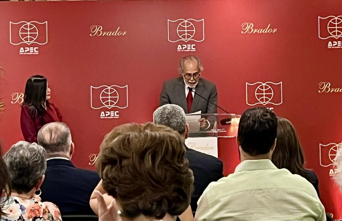 Distinguidas autoridades de APEC, encabezadas por el Presidente del Grupo APEC, Lic. Carlos A. Ortega, distinguidos miembros de la directiva de APEC Cultural, apreciado expositor Marcos Brador, familiares del artista, distinguidas personalidades que nos acompañan, damas y caballeros, amigos todos.